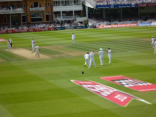 I went to the cricket yesterday. I asked N if we could go to a match sometime, bring a book, drink beer from a plastic cup. I imagined something a bit like watching the cobbled together cricket match that happens at London Field's every Sunday. But with less gingham shirts and more cricket whites. Instead I went down the road to Lord's on the day that England were set to win the Ashes at 'the home of cricket' for the first time since 1934. My brother is still not talking to me.